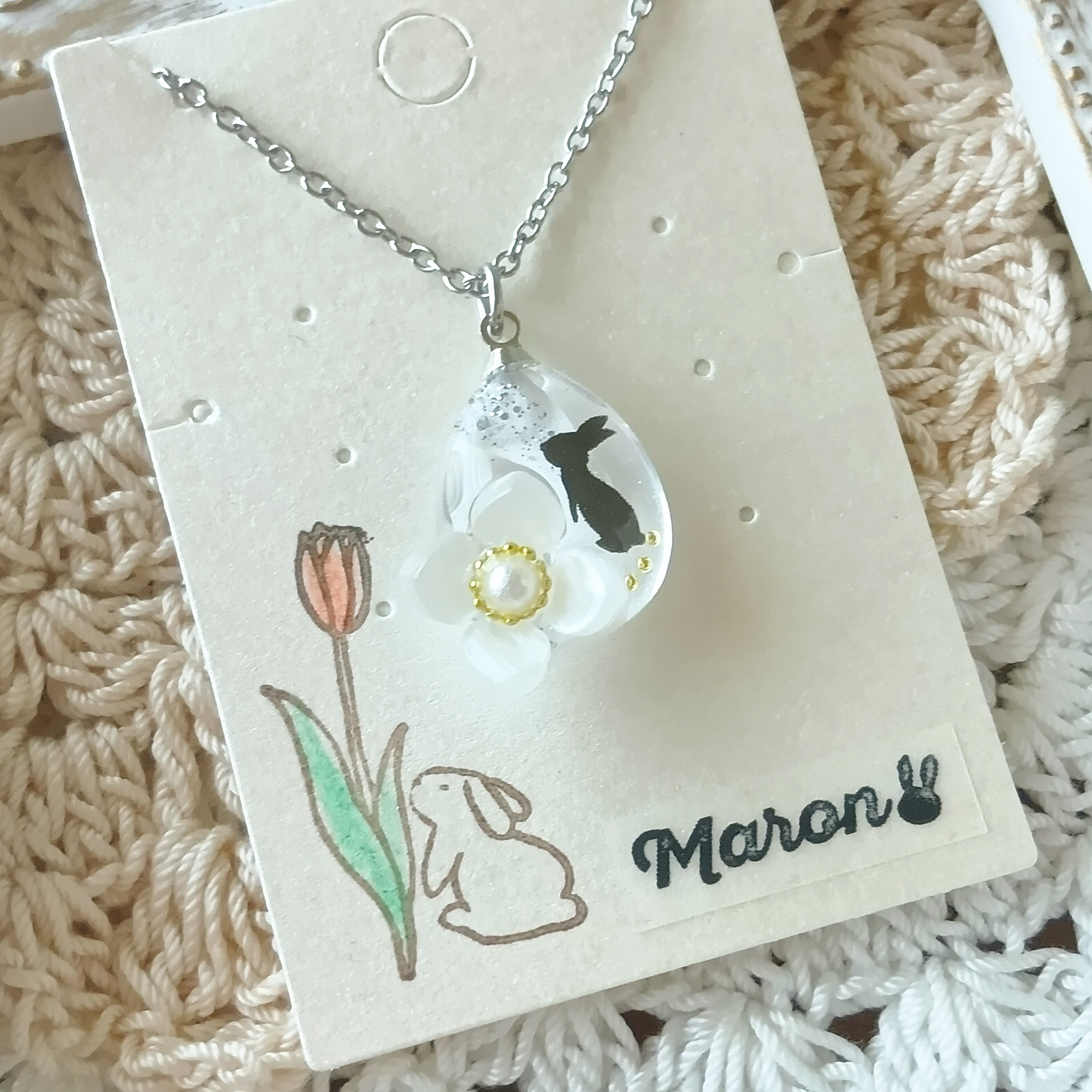 雫うさぎ・兎花ネックレス(ホワイト)2種